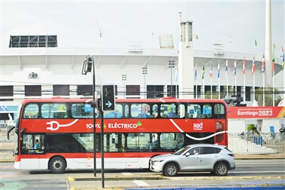 2023泛美运动会日前在智利圣地亚哥举行,圣地亚哥520路公交路线是为此次运动会特别开设的,负责将前来观会的各国观众运往比赛场馆。这条路线的10辆双层新能源公交车由中国制造,向世界讲述着中国新能源公交车和圣地亚哥的绿色环保故事。
